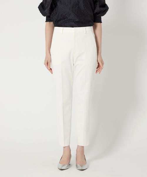 洗練されたテーパードシルエットで魅せる大人のホワイトスリムパンツ