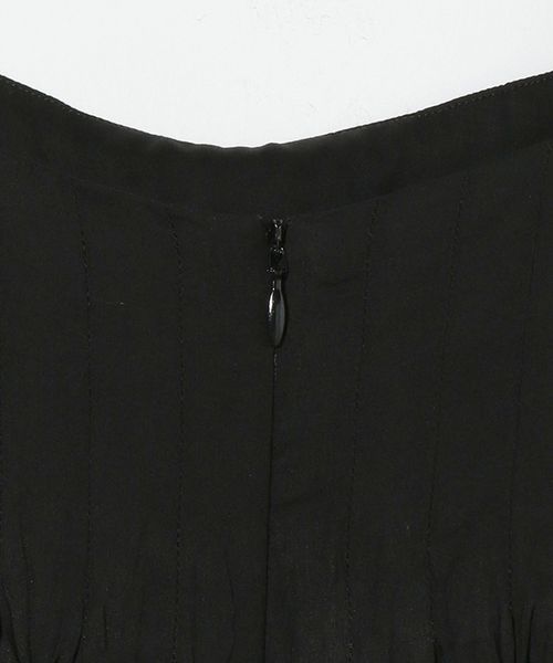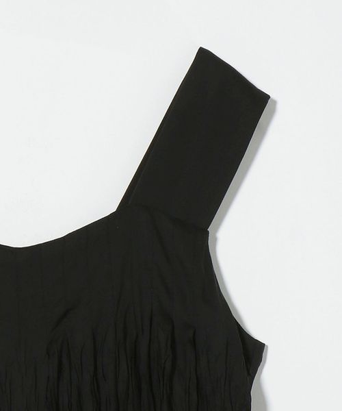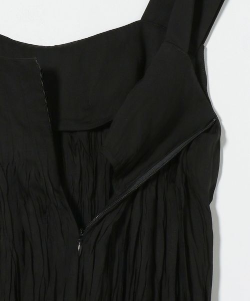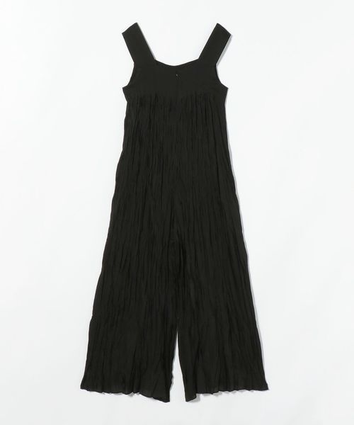 胸元からたっぷりとられたタックデザインが目を惹くジャンプスーツ。