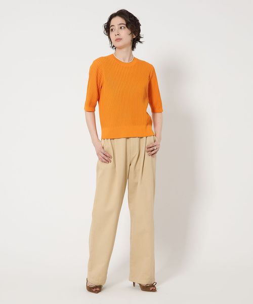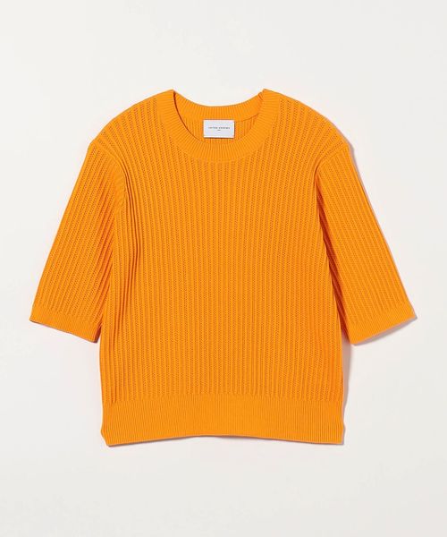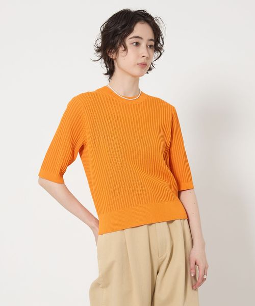 ビビッドなオレンジカラーも強い印象になりすぎないのは編み組織の効果。