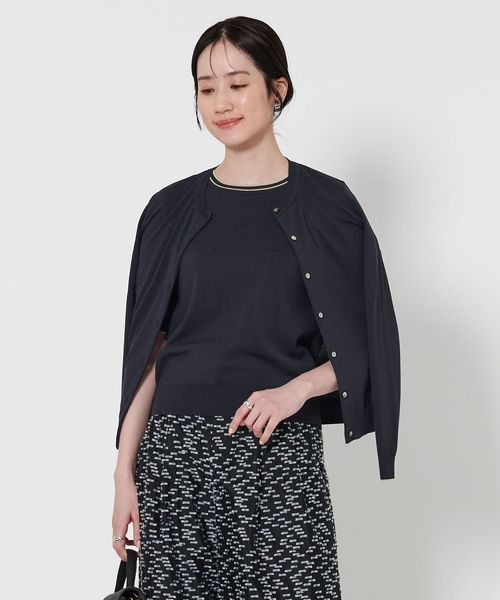 コットンシルク 18G クルーネック カーディガン