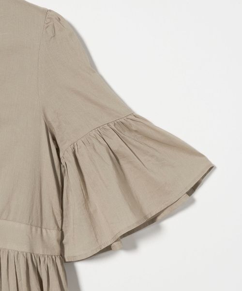 ふんわりと広がるベルスリーブは、二の腕をカバーしながら腕をすっきり見せてくれるシルエット。