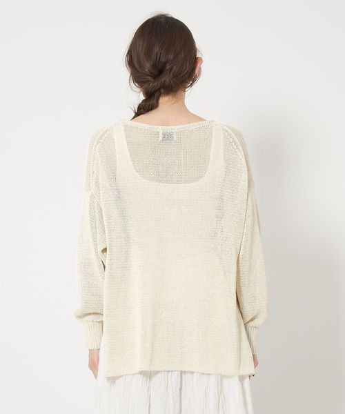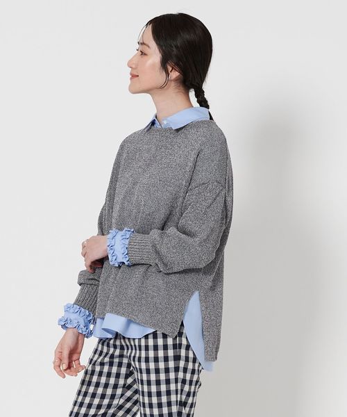 ゆったりとしたシルエットのサイドスリット入りプルオーバーニット。