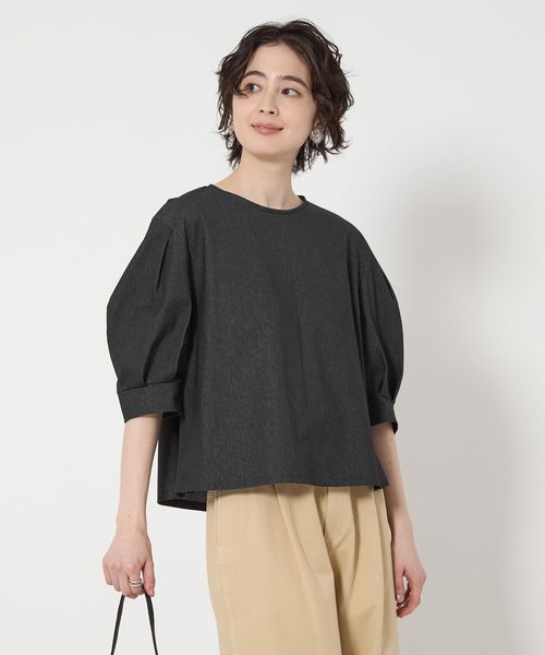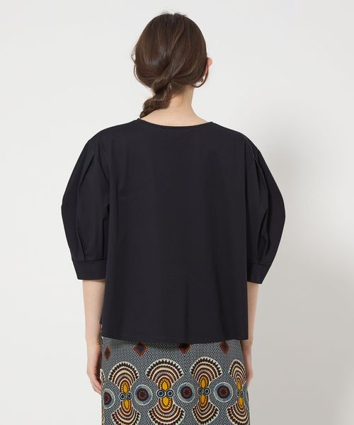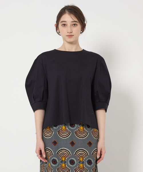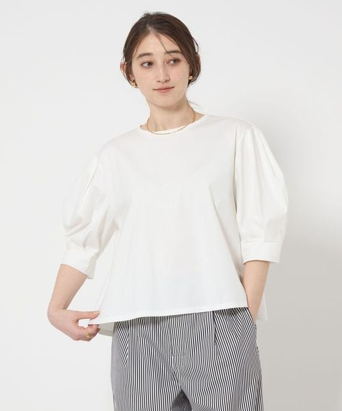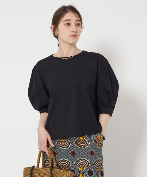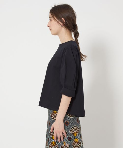 適度な光沢感があり、カットソーながらブラウスのような上品さを持ち合わせた一着です。