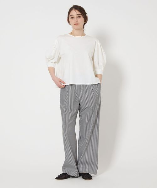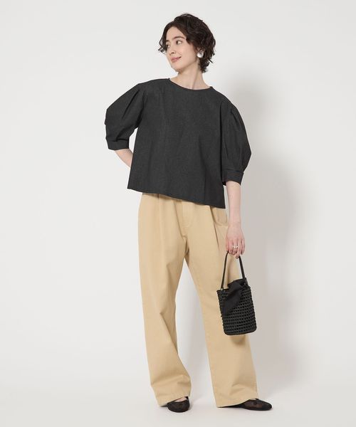 パンツスタイルやストレートスカートなどすっきりとしたシルエットのボトムスと好相性。