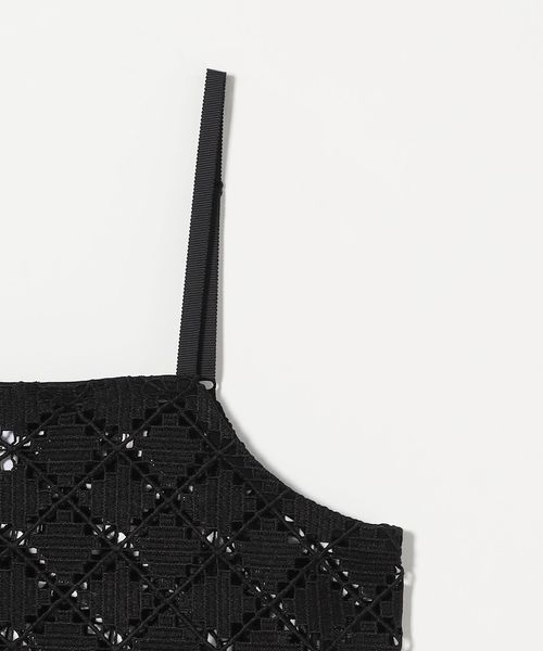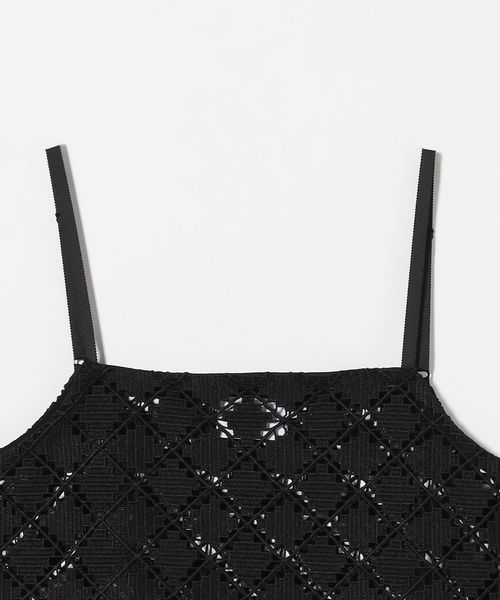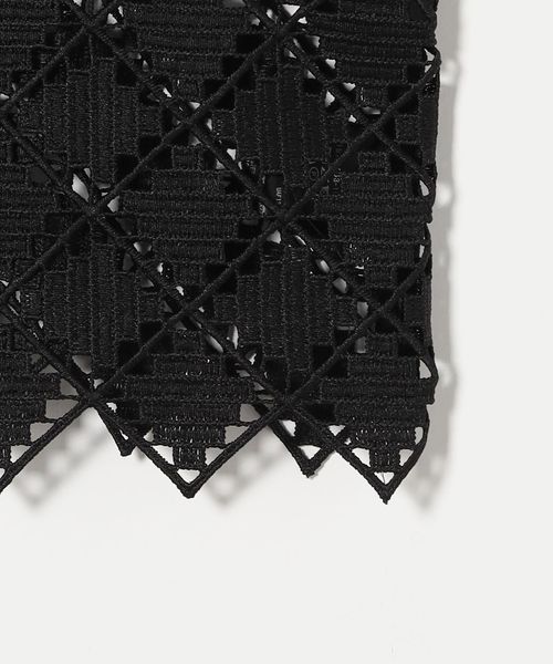 甘さ控えめな幾何学柄レースは辛口な着こなしにマッチするアイテム。