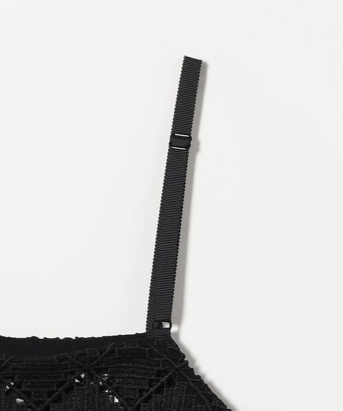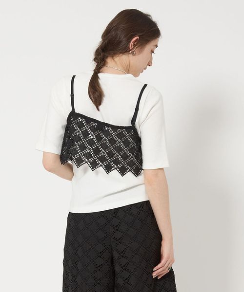 レイヤードのポイントになるレースのキャミソールビスチェ