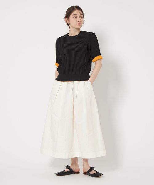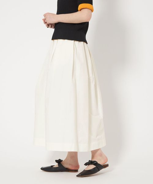 ハリのある構築的なシルエットが特徴のフレアスカート。