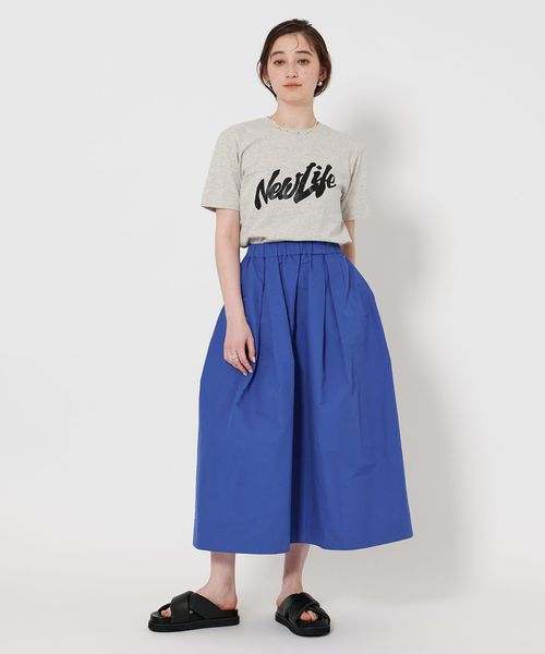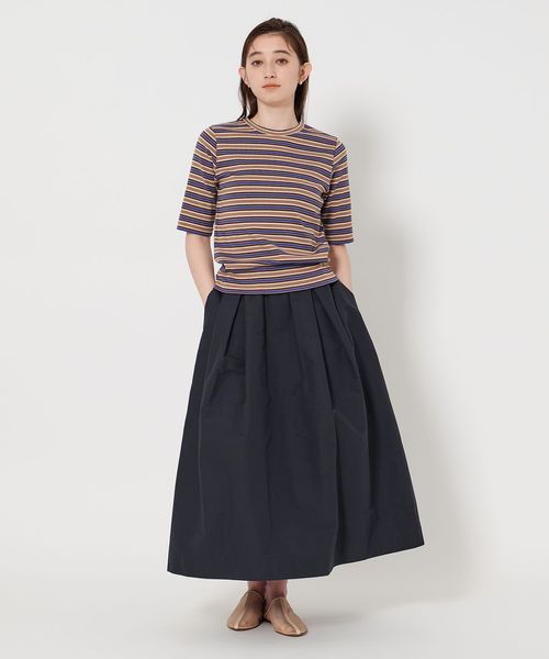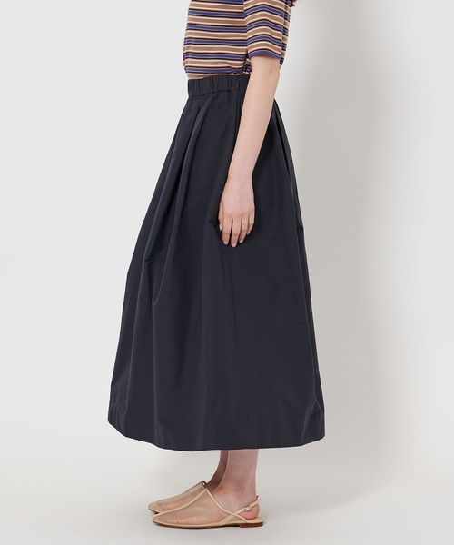 素材のハリを活かした華やかなフレアシルエットのロングスカート