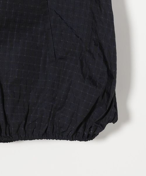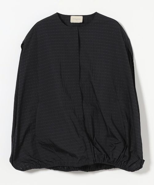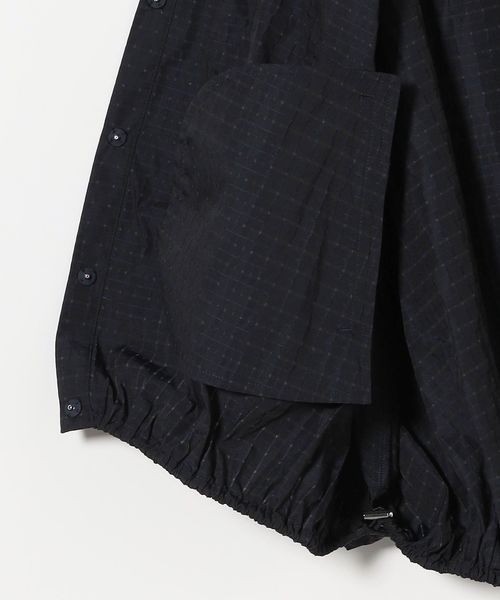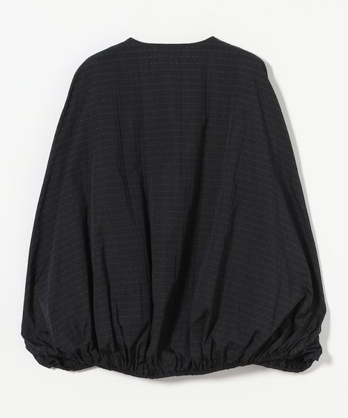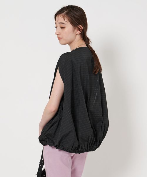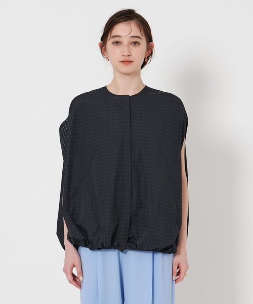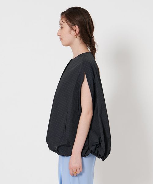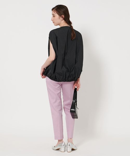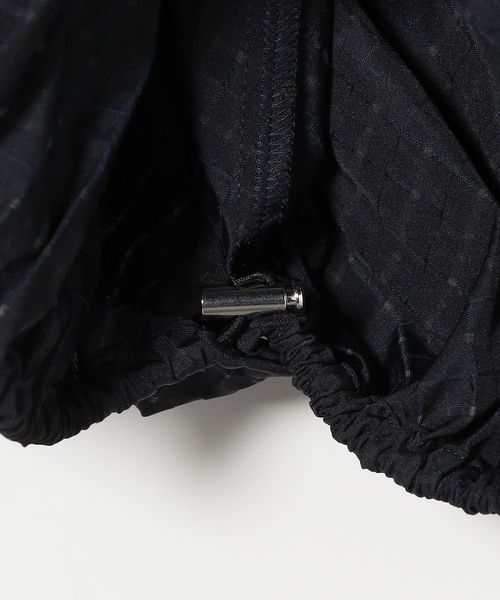 タフタ素材を活かし、裾に調整可能なドロストコードを入れた裾バルーンシルエットとスリットスリーブが特徴。