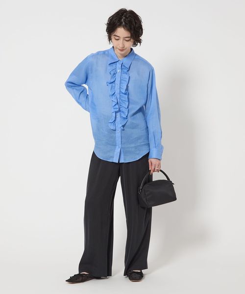 しなやかなドレープ感とパウダリーな微光沢が特徴のイージーパンツ。