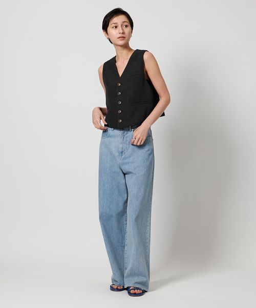 コンパクトな着丈で5つボタンがマニッシュな印象を演出するベスト。