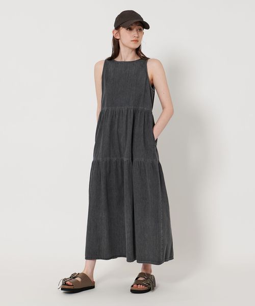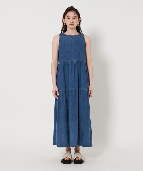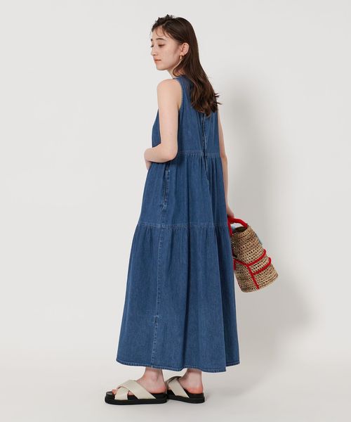 程よいフェード感のデニムにティアードデザインを取り入れたワンピース。