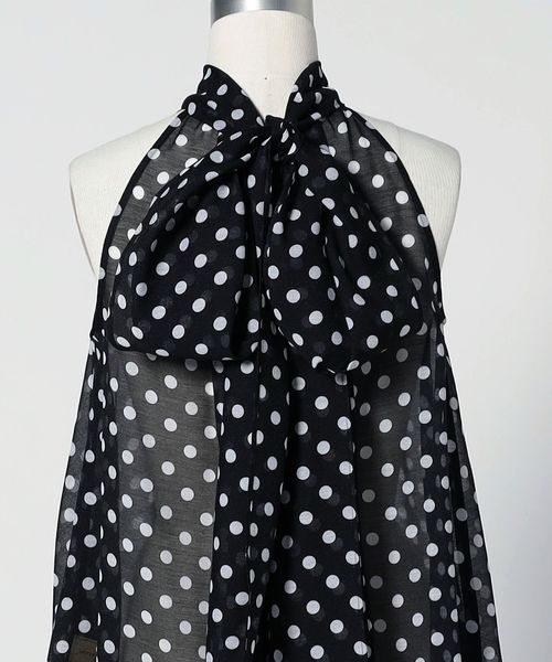 長めのボウタイを後ろで結ぶと甘い印象が軽減されエレガントな印象に。