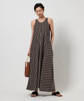 ストライプの生地を縦横で切り替えてアクセントをつけたマキシ丈ワンピース。