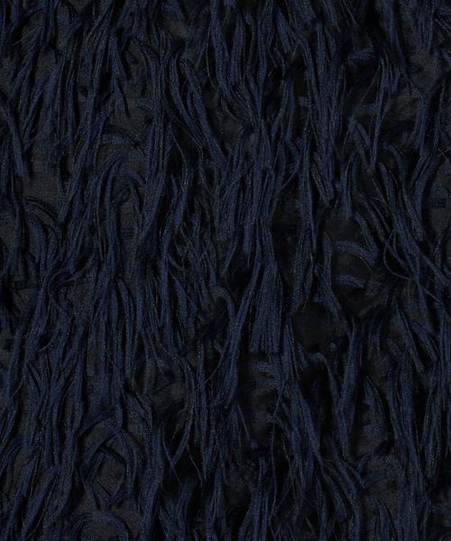 シアーの土台に数色のウーリーポリエステルを幅広で浮かして織り丁寧にカットした、毛足長めでボリュームあるフリンジカットジャカード。