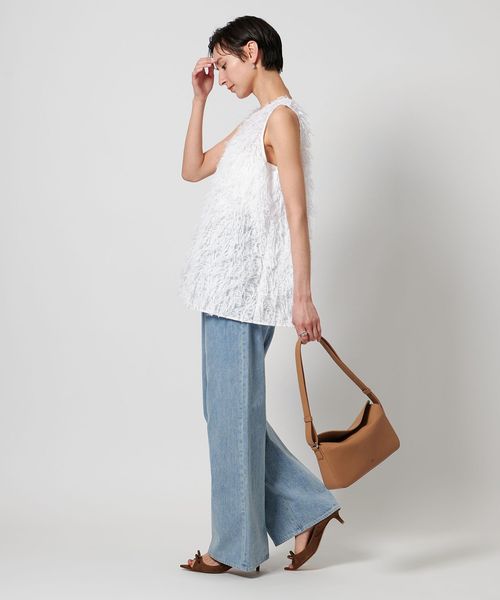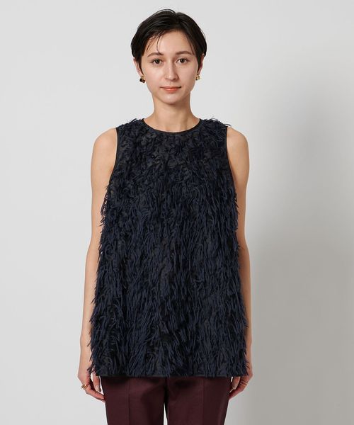 個性的な生地感が印象的なスタイルを演出するノースリーブブラウス
