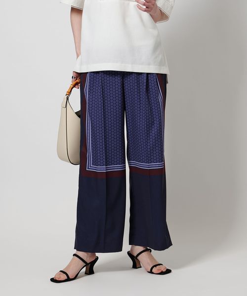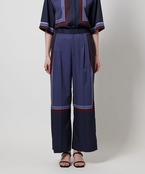 鮮やかな配色のパネルプリントが目を惹くパンツ。
