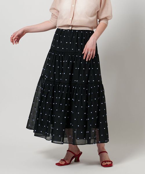 歩く度に揺れ感が華やぐドットジャガードスカート
