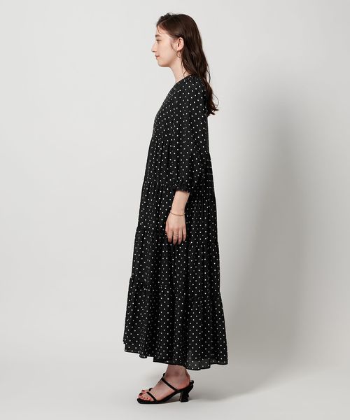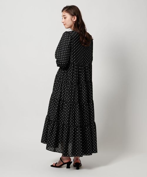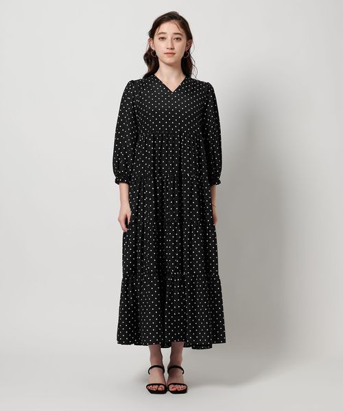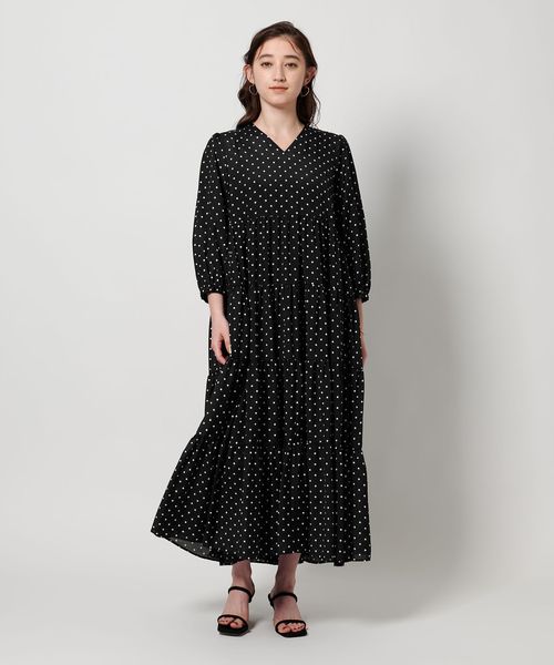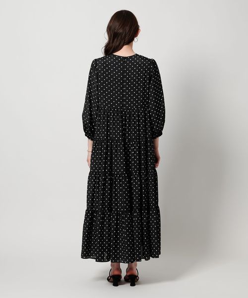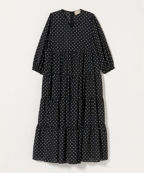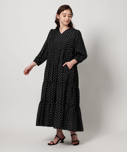 ドットプリントが華やかなティアードワンピース
