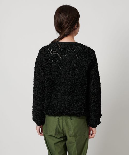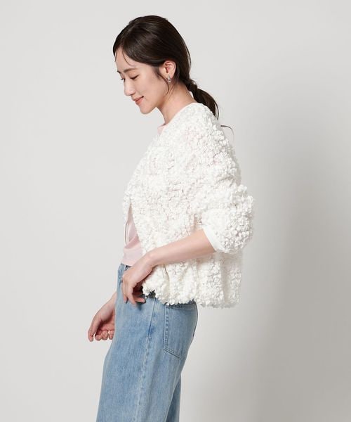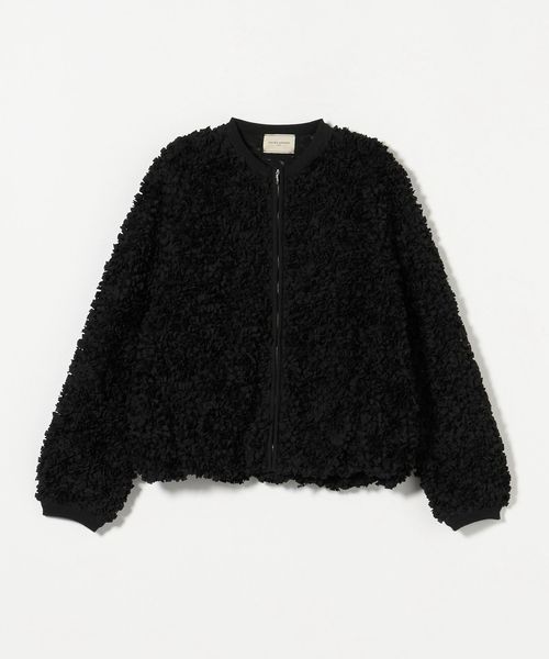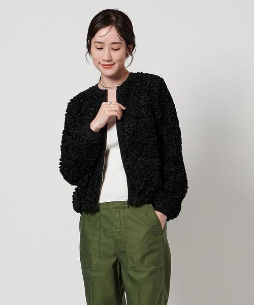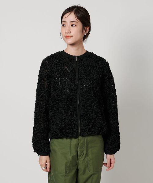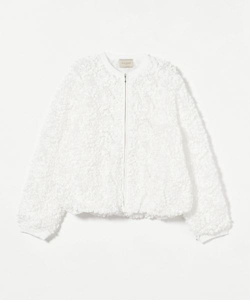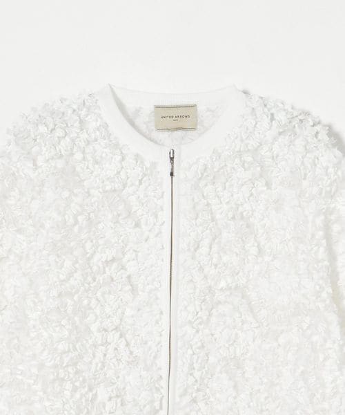 立体感のあるオリジナル刺繍生地が華やかな印象のニットブルゾン。