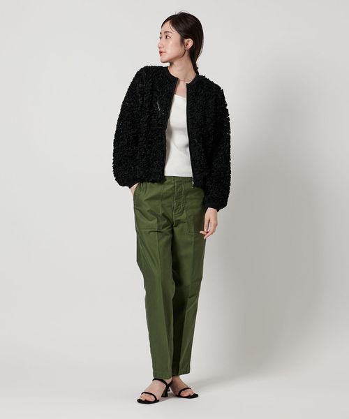 タイトスカートやテーパードパンツ合わせが好相性です。