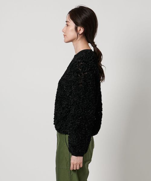 贅沢な生地感が目を惹く華やぎニットブルゾン