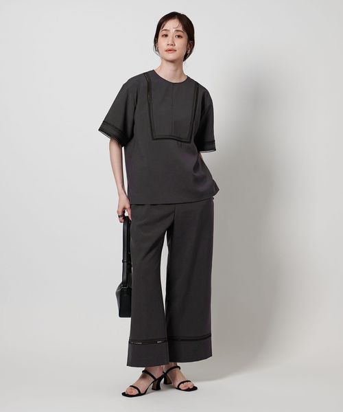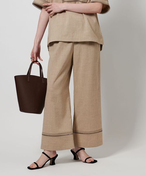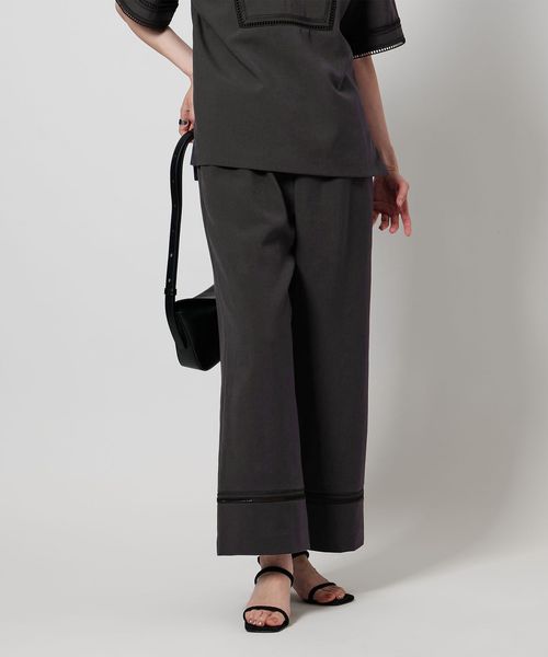 裾にはしご調の刺繍を挟み込み軽さのあるディティールがポイントのイージーパンツ。
