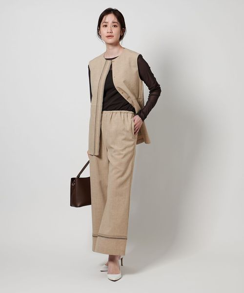セットアップのブラウスやカットソー+ベストとの合わせもおすすめです。