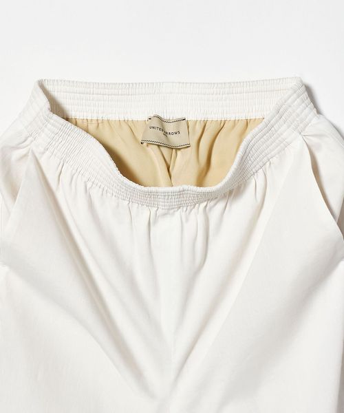 ウエスト周りのギャザー分量を少なめに設定し、ヒップ周りもややフィットするすっきりストレートシルエット。