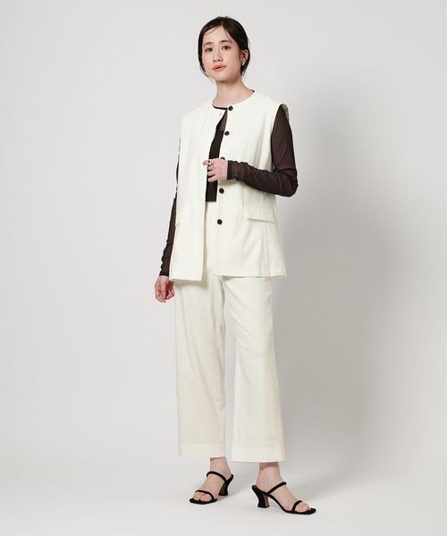 同素材のパンツとのセットアップもおすすめです。
