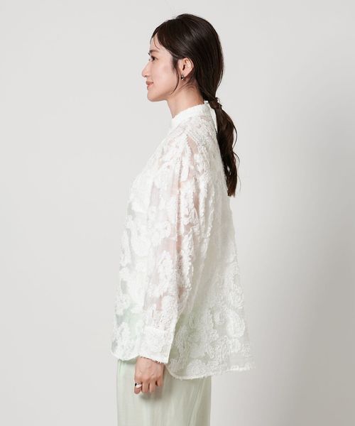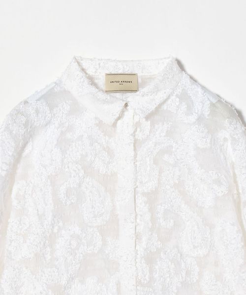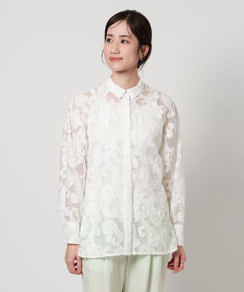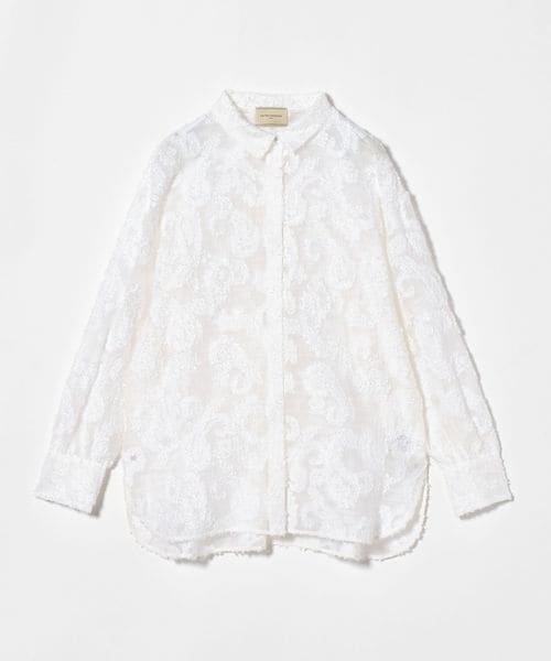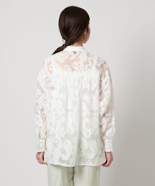 立体感のあるペイズリー柄のカットジャガードが印象的なシャツブラウス。