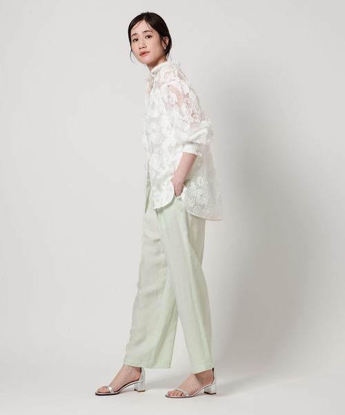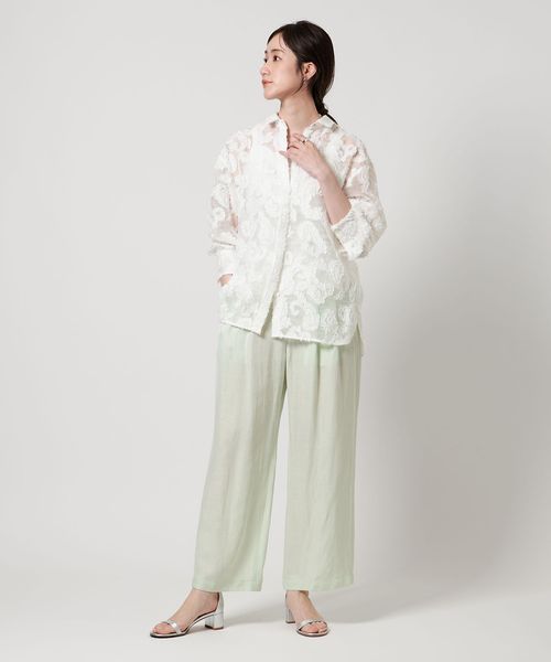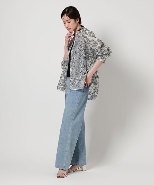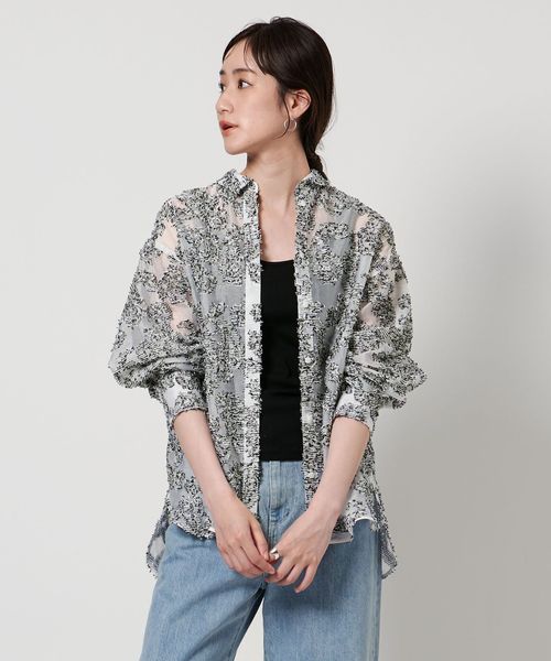 上品な透け感がエレガントな雰囲気を演出するシャツブラウス