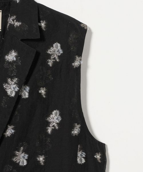 タフタベースに羽衣ラメ(裏面カット)とポリエステルウーリー(表面カット)で表現した両面カットジャガードのユナイテッドアローズオリジナル素材。