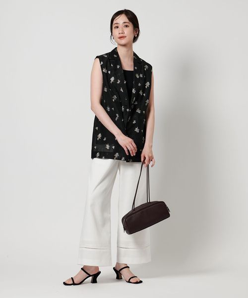 ボトムはテーパードパンツやワイドパンツ、タイトスカートなどシルエットを選ばない着回しの利く一着。