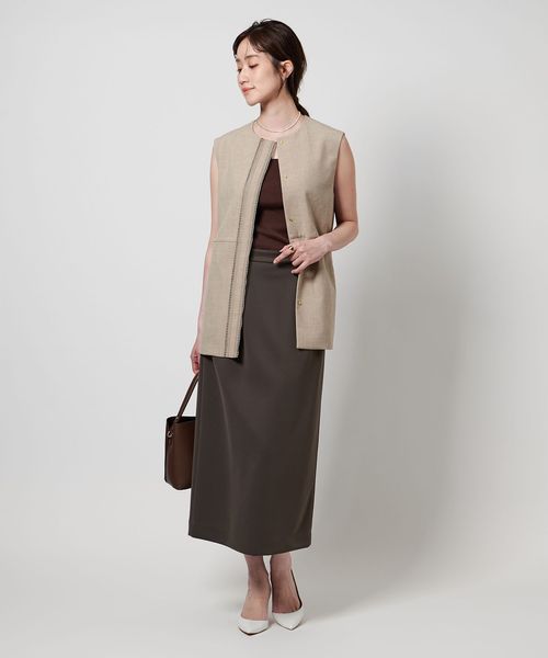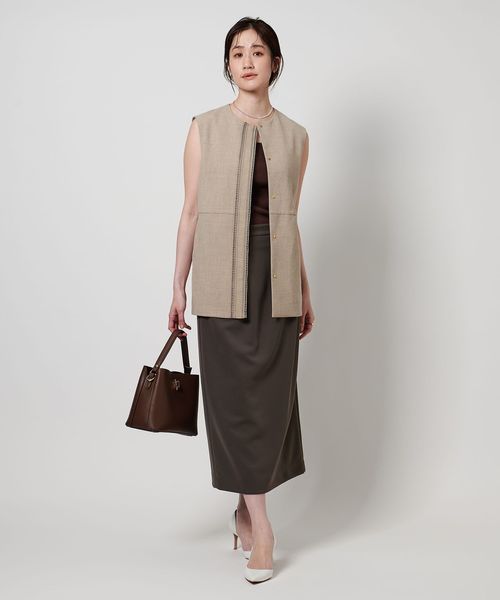 同素材のブラウスとセットアップはもちろん、単品ジャケットやデザインブラウスとの合わせもおすすめ。