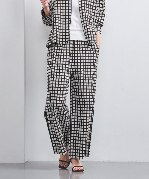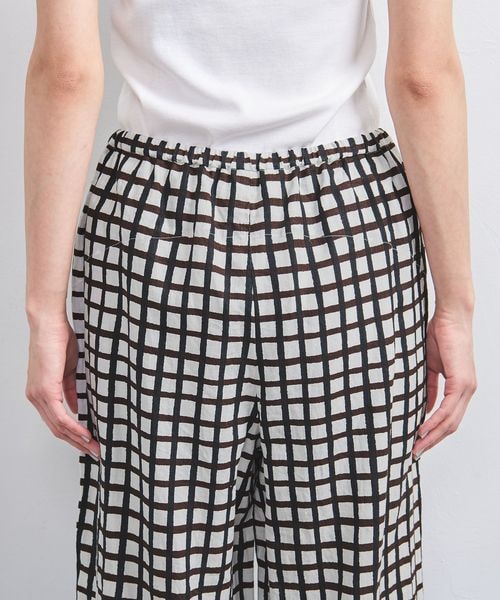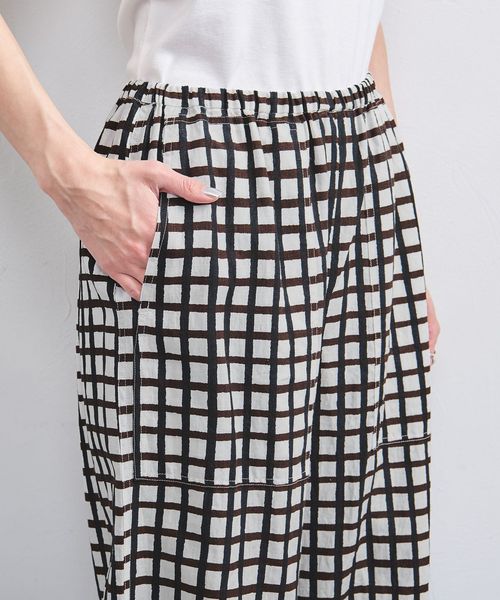 リネン チェック パッチポケット イージーパンツ
