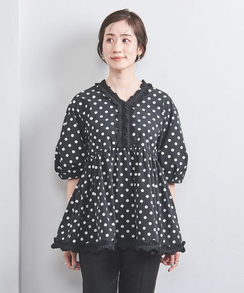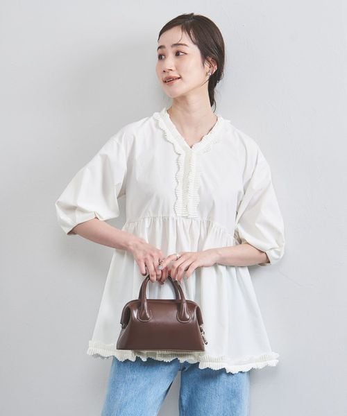 タックフリルで顔周りを華やかに彩る、大人の甘めブラウス