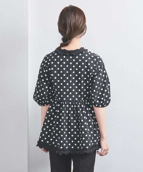 肘にかかる袖丈のパフスリーブで、ペプラムディテールシルエットがフェミニンな佇まいの一着です。