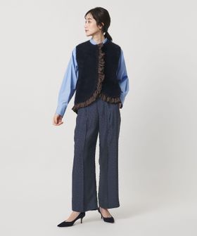 ジャケット合わせのきれいめな着こなしから、透かし編みニットとのカジュアルなスタイルにも好相性。