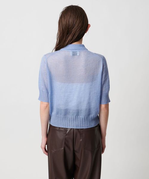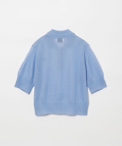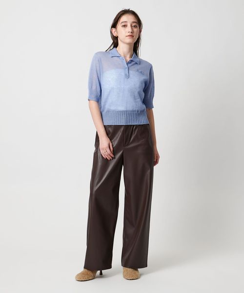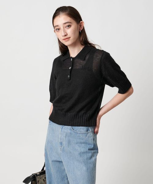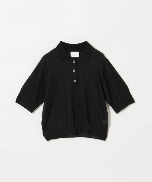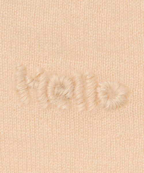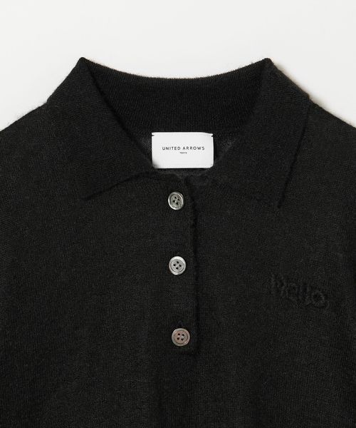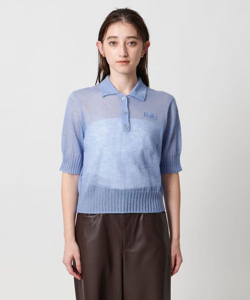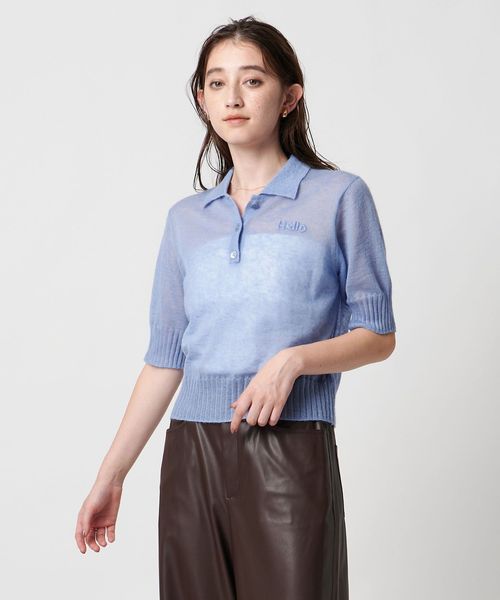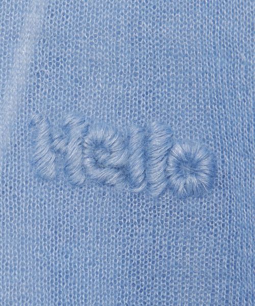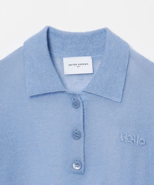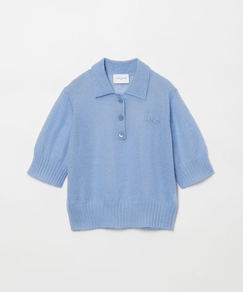 端正なポロ襟デザインに、左胸に手刺繍で"Hello"の文字が施されたニットプルオーバー。