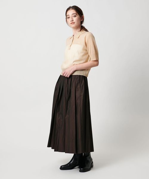 定番アイテムのフレアスカートやワイドパンツとの合わせに、鮮度をもたらしてくれる一着です。