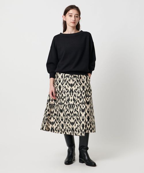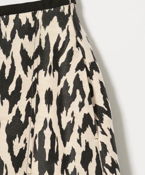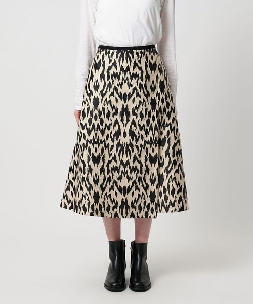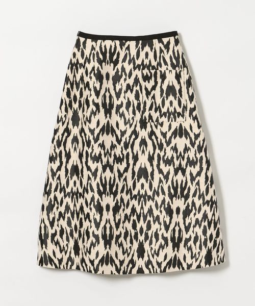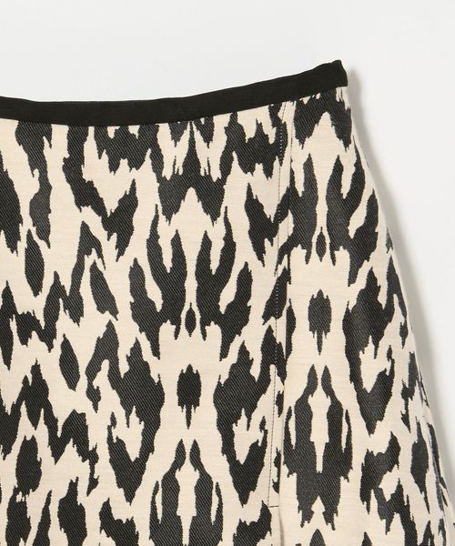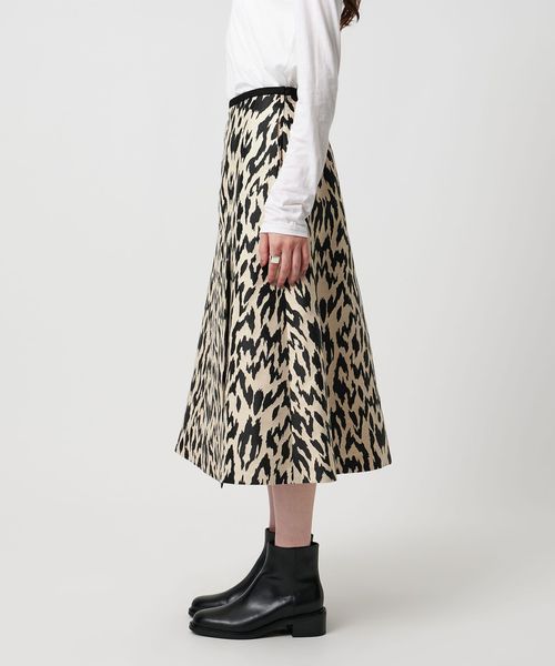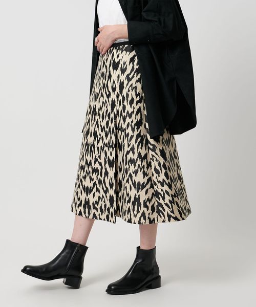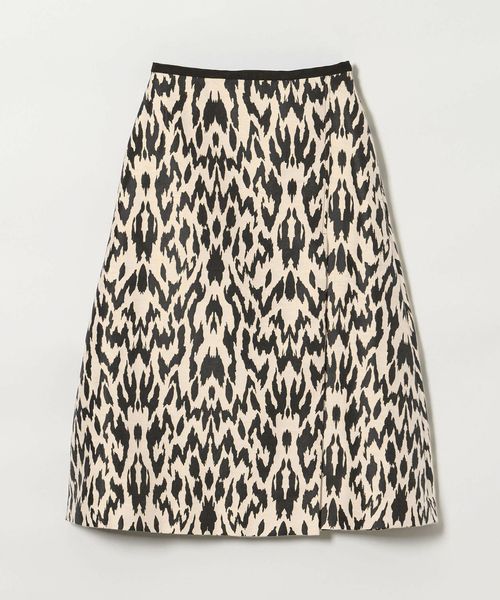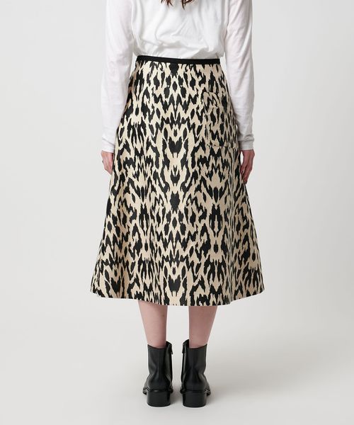 レオパード柄をキリム調で表現した、存在感のあるラップ調のAラインスカート。