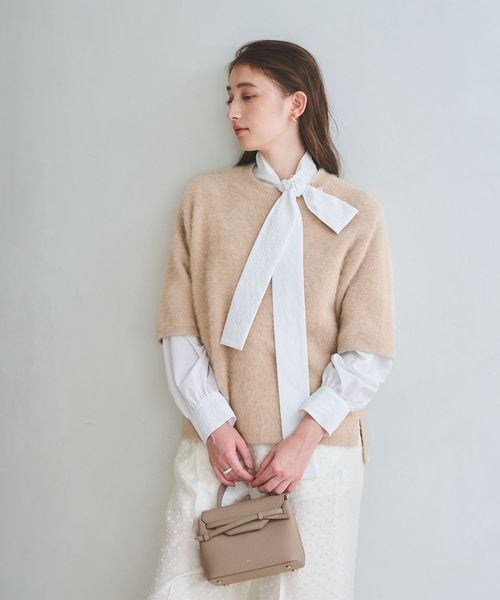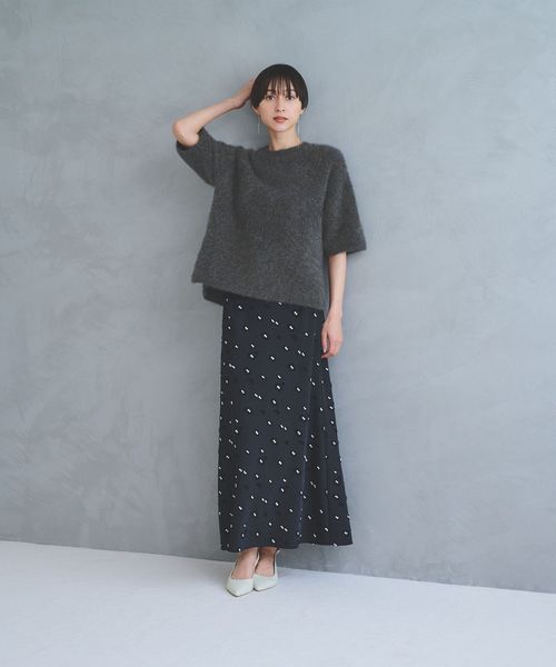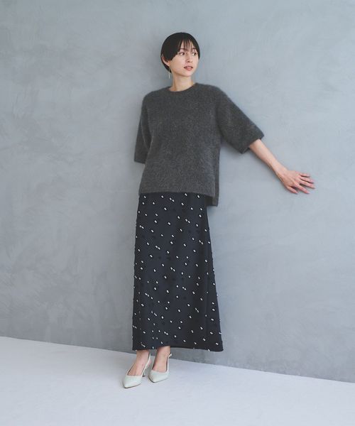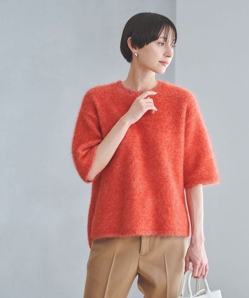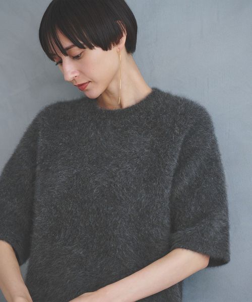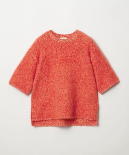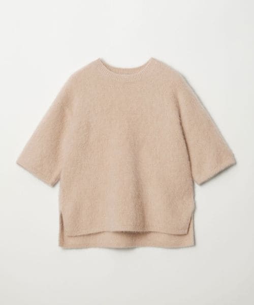 ゆったりとしたサイズ感のTシャツ型ハーフスリーブニット。