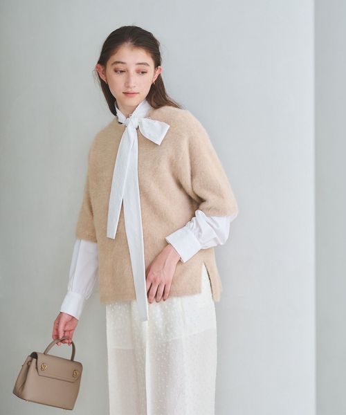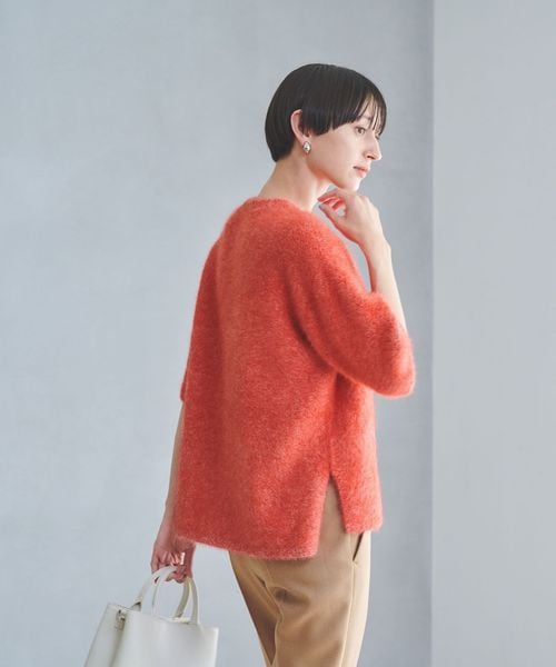 ※この製品は滑らかで豊かな風合いを持った製品です。 着用中の摩擦や静電気により、重ね着した他の衣料に毛羽が付着することがあります。 必要以上の摩擦は毛羽脱落の原因になりますのでお避け下さい。また、繊維の表面が着用中に擦られたり、もまれたりすることで、毛羽の乱れや毛玉(ピル)が発生します。これは、素材の特性上、着用の際、避けられない現象で、その発生を完全に防止することはできません。インナー等に毛羽が付着した場合は、素材に合わせた衣料用ブラシで取り除いて下さい。毛玉(ピル)が出来ましたら、引っぱって取ろうとせず、ブラッシングするか、小さなハサミで取り除いて下さい。毛足の長い素材や反対色と組み合せて着用されますと、毛羽の付着が目立ちやすくなりますので、同色調ですべりの良い素材との組み合わせをお勧めします。いつまでも美しく着て頂くために、1日着用したら2日休ませるなどローテーションしていただくことをお勧めします。