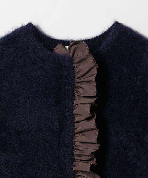 滑らかな手触りとふわりとした毛足感が特徴のフォックスカシミヤブレンド素材を表側に使用。
