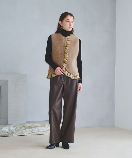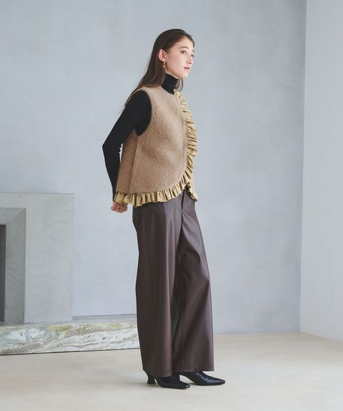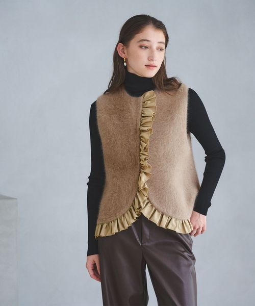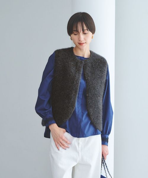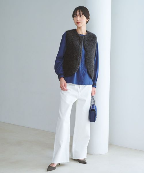 さっと羽織るだけで様になるニットベストは、シルエットも美しくボトムスを選ばず着用していただけます。