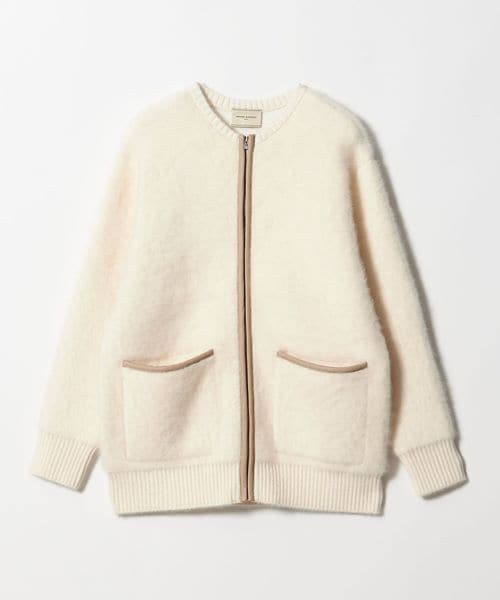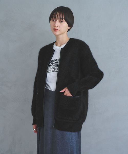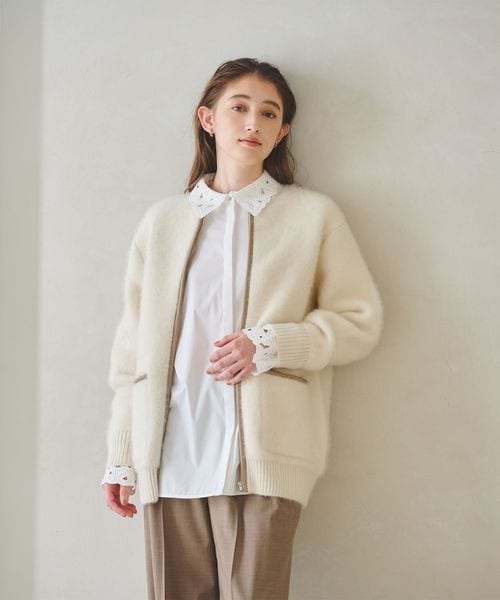 滑らかな手触りとふわりとした毛足感が特徴のフォックスカシミヤブレンド素材を表側に使用。