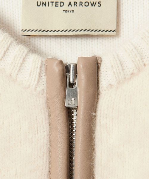 すっきりとしたファスナー開きで前中心とポケット口のレザー調トリムがアクセントに。