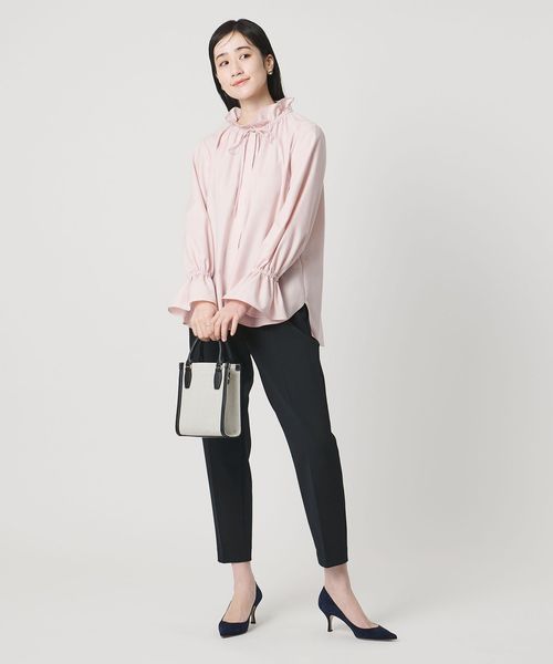 同素材のブラウスやベスト、ペプラムジャケットとの統一感のある着こなしで、特別な日の装いにも。