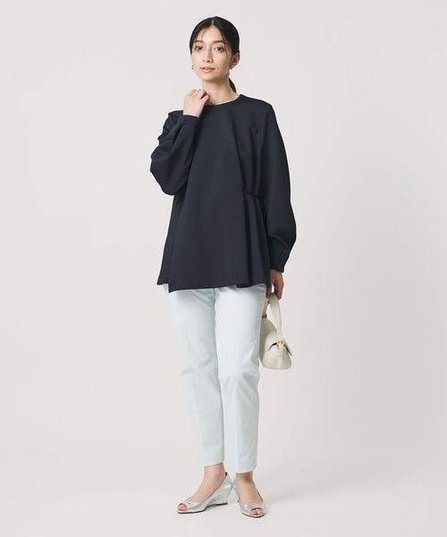サイドに施したタックから生まれるドレープと、反対側のベントスリットがモダンで洗練された印象に。